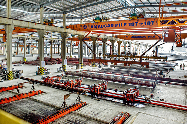 Với một lượng thiết bị lớn gồm 11 cầu trục, 6 line rải bê tông, 2 trạm trộn 120m3/hx2 = 240m3/h, 7 giàn quay ly tâm, 12 hầm sấy cùng hệ thống máy cắt thép, tán đầu hàn lồng tự động và bán tự động, nhà máy cọc bê tông thương hiệu AMACCAO của Công ty Châu Âu Nam luôn chủ động được tiến độ cho các dự án lớn.