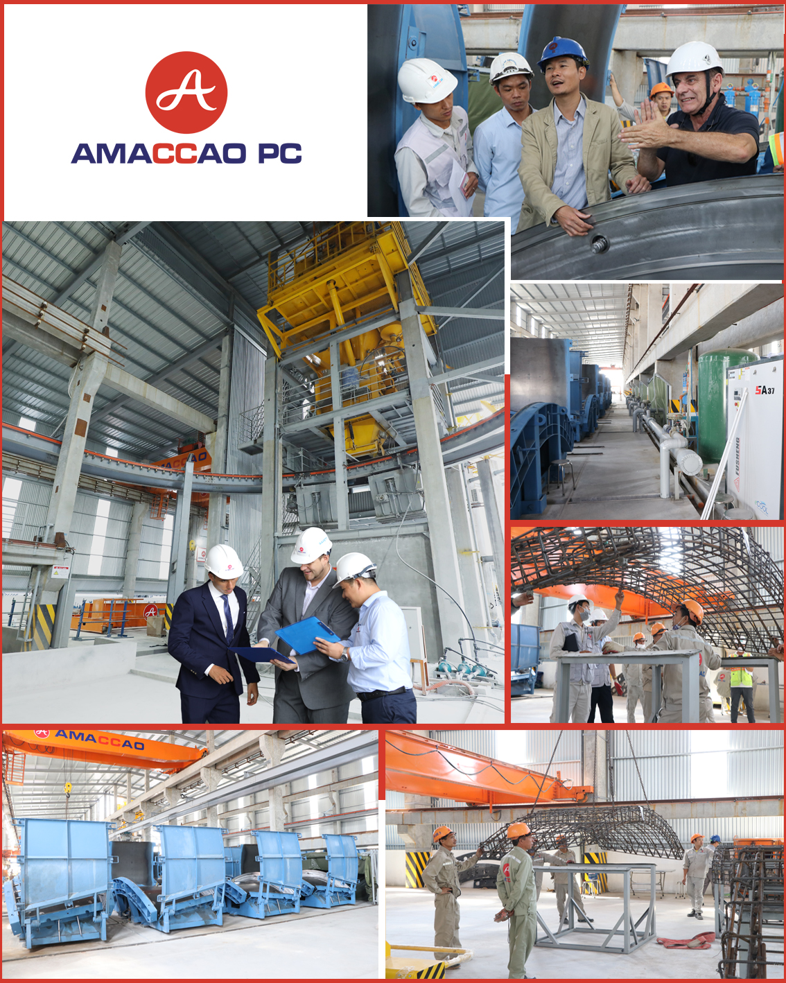 Nhà máy sản xuất cấu kiện bê tông thương hiệu AMACCAO của Công ty Châu Âu Nam có khả năng sản xuất các sản phẩm cấu kiện bê tông đặc thù như tấm vỏ hầm segment.